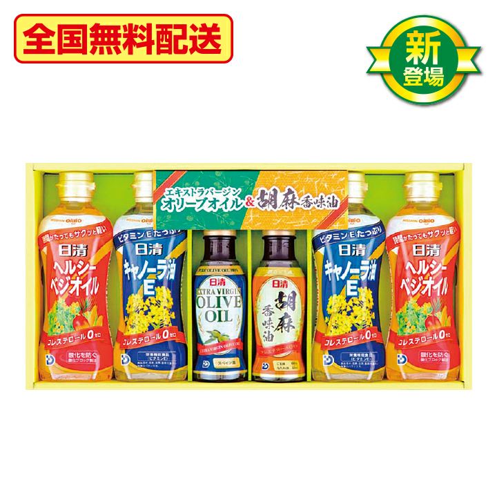 | 内容量 | ヘルシーベジオイル350g×2、キャノーラ油E 350g×2、エキストラバージンオリーブオイル145g、胡麻香味油145g |