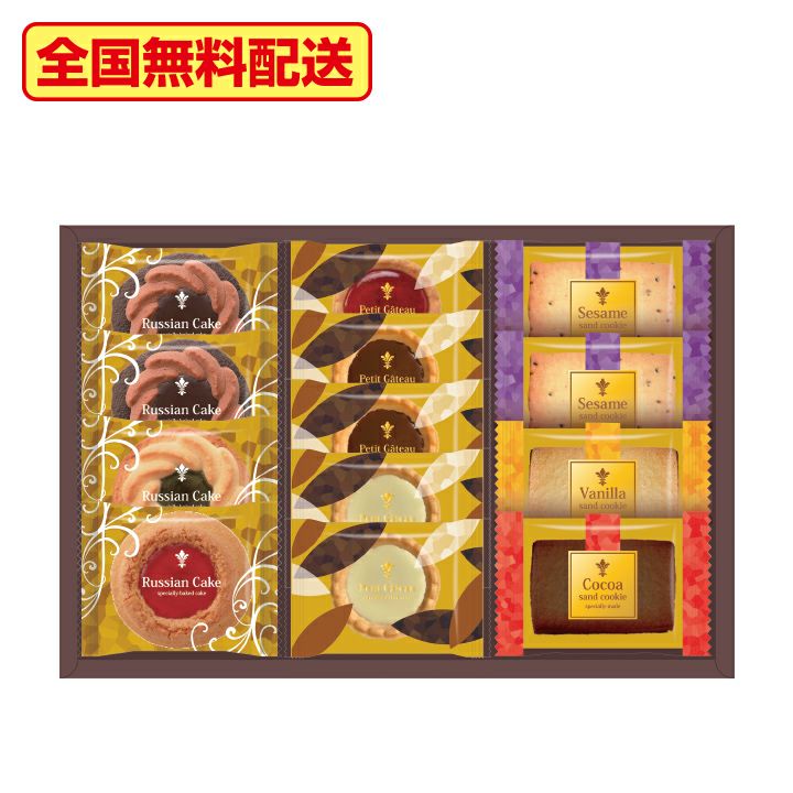 内容量ロシアケーキ×4、プチガトー×5、サンドクッキー×4