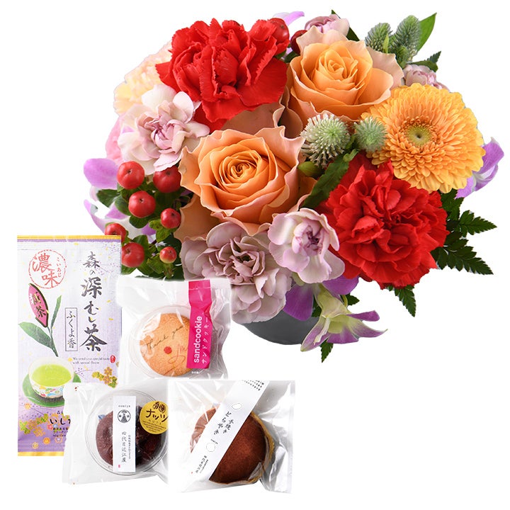 HANAKOUBOKITANOブーケ「グレイス」+お菓子・新茶セット