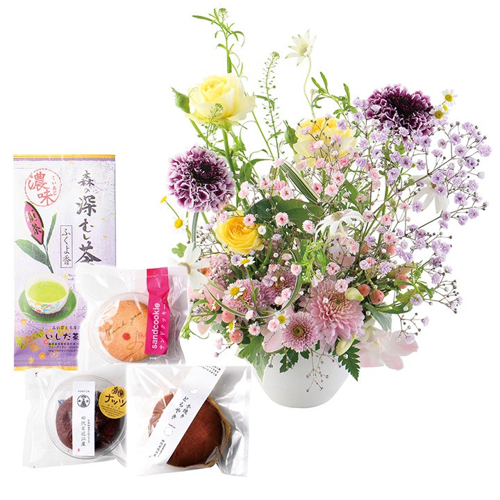HANAKOUBOKITANOブーケ「春風ソネット」+お菓子新茶セット